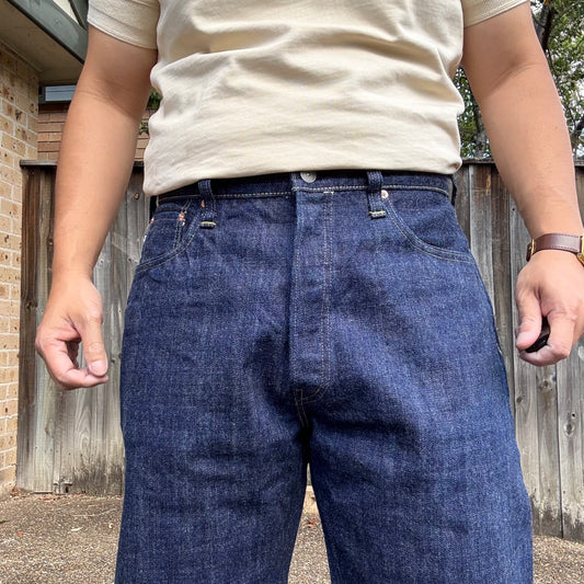 Sugar Cane SC40401 14Oz Hawaii Indigo Mixed Right Twill Jeans ONE WASH